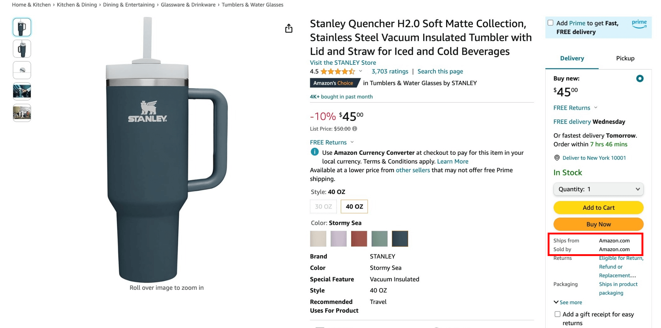 Even though Amazon is the manufacturer of record (MOR), they acquired the goods via a reseller, making them a second-party (2P) vendor. Amazon usually uses 2P to augment its inventory since it is less frequent. “Ships from and sold by Amazon.com” is another label on some products.